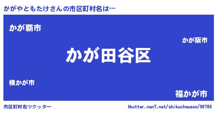 | 意味不明あだ名 | 『永久保存かがやともたけ』 |