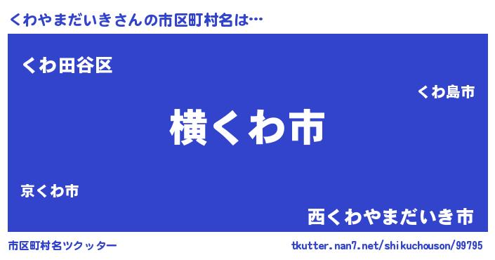 | 肩書あだ名 | 『くわやまだいき閣下』 |