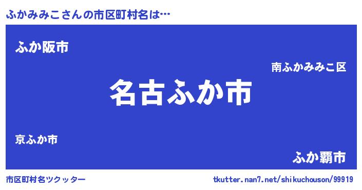 | ポケモン風あだ名 | 『フカゴンZ』『ヒフカミミコ』 |