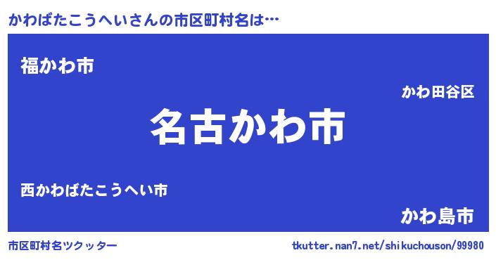 | ヒーロー風カッコイイあだ名 | 『慈愛の使者かわばたこうへい』 |