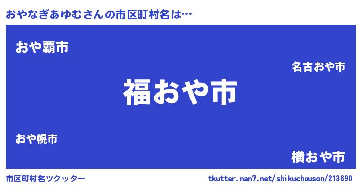 | 可愛いあだ名 | 『おやぷりん』『おやなぎあゆむママ』 |