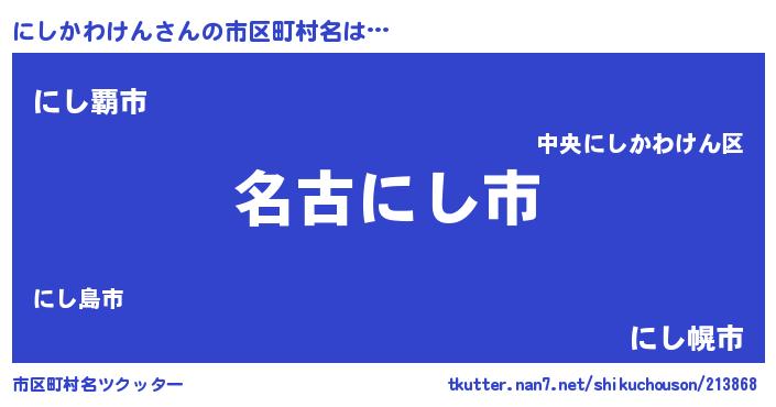 | 男性向けラノベタイトル風あだ名 | 『にしかわけんに滅ぼされるだけの簡単なお仕事です』 |