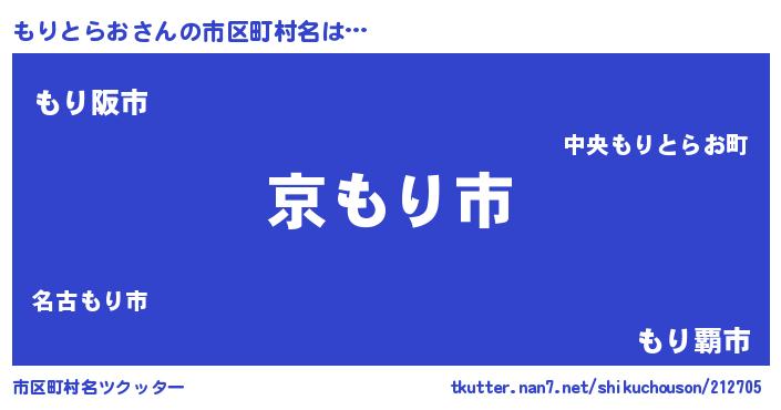| 意味不明あだ名 | 『住所不定無職もりとらお(79歳)』 |