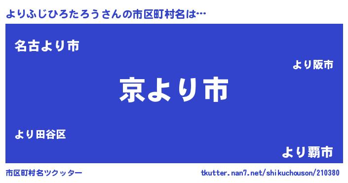 | ヘコむあだ名 | 『よりふじひろたろう(笑)』『よりを』 |