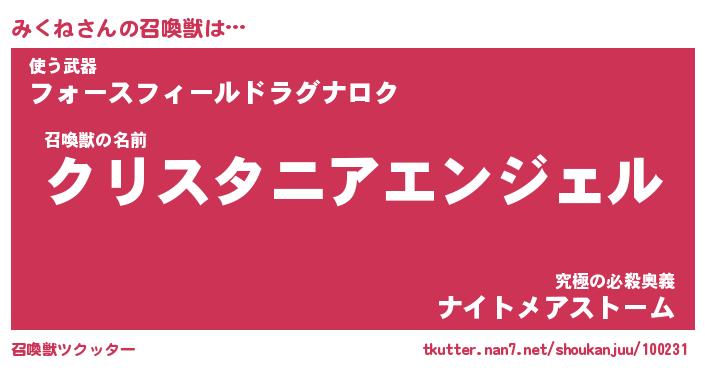 | ファンタジー風あだ名 | 『ミクフェル』『エターナルミクネー』 |