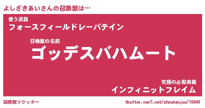 | ヒーロー風カッコイイあだ名 | 『スーパーヨシザキアイ』『幻影騎士ヨシ』 |