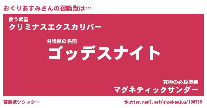 | 女子向けラノベタイトル風あだ名 | 『おぐりあすみ姫と円卓の騎士』 |
