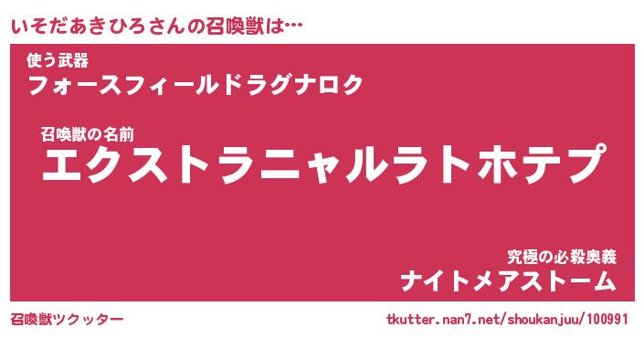 | 伝説のあだ名 | 『伝説のスナイパーいそだあきひろ』 |