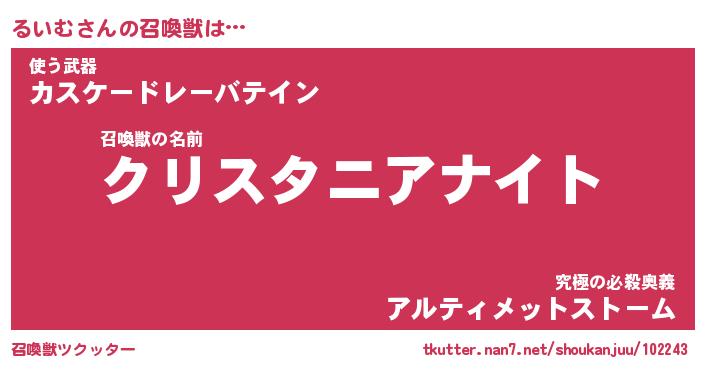 | ファンタジー風あだ名 | 『ルイフェル』『エターナルルイムー』 |