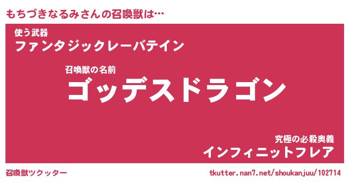 | 伝説のあだ名 | 『不死鳥の竜騎士もちづきなるみ』 |