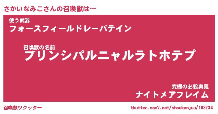 | 伝説のあだ名 | 『不死鳥のスナイパーさかいなみこ』 |