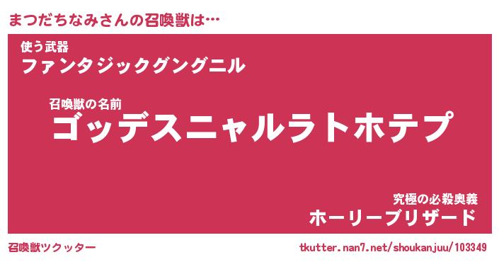 | 胡散臭い通販商品みたいなあだ名 | 『モテモテ間違いなし霊験あらたかなお札…その名も「まつだちなみ」』 |