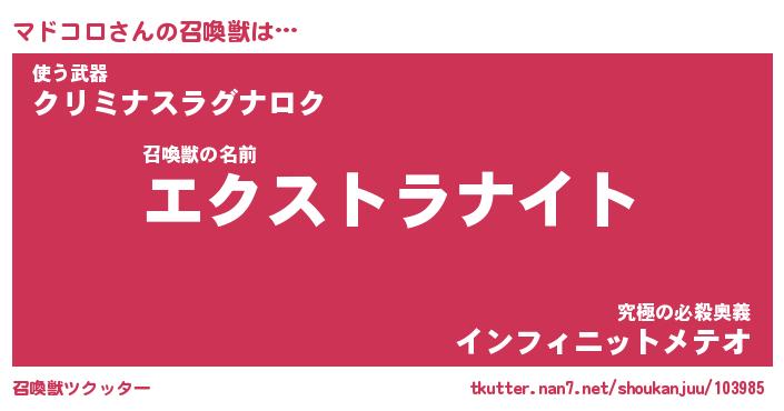 | ヒーロー風カッコイイあだ名 | 『スーパーマドコロ』『天弓騎士マド』 |