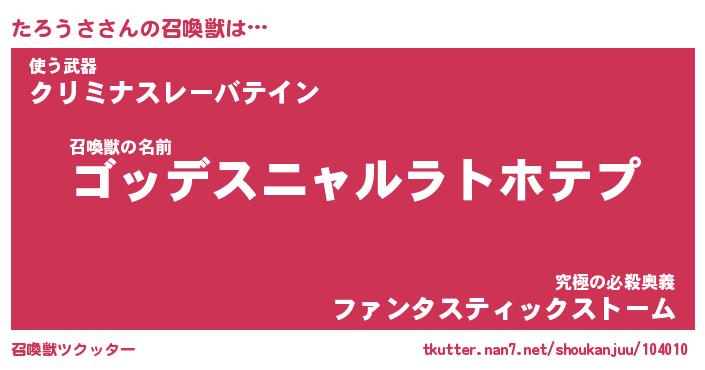 | ヒーロー風カッコイイあだ名 | 『スーパータロウサ』『天弓騎士タロ』 |