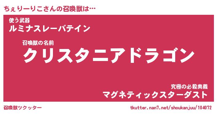 | 伝説のあだ名 | 『封印されし竜騎士ちぇりーりこ』 |