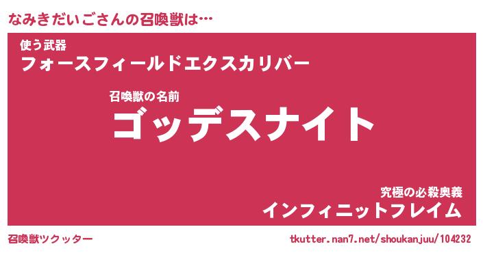 | 女子向けラノベタイトル風あだ名 | 『なみきだいご姫と円卓の騎士』 |