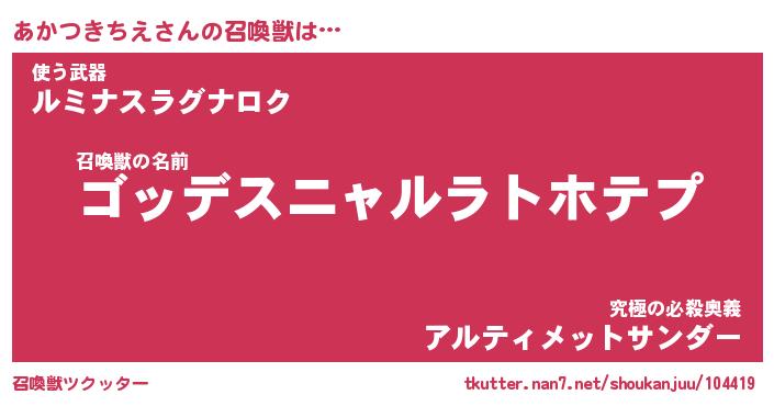 | ヒーロー風カッコイイあだ名 | 『スーパーアカツキチエ』『幻影騎士アカ』 |