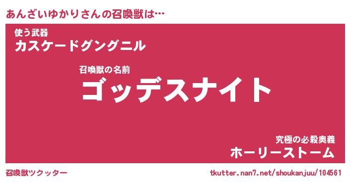 | 女子向けラノベタイトル風あだ名 | 『あんざいゆかり姫と円卓の騎士』 |