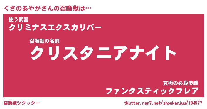 | ヒーロー風カッコイイあだ名 | 『スーパークサノアヤカ』『幻影騎士クサ』 |