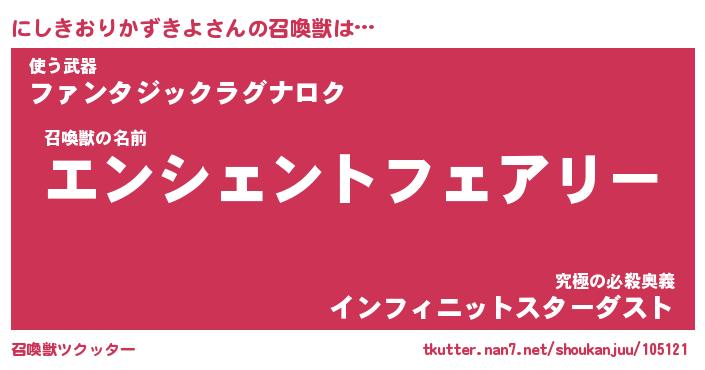 | 男性向けラノベタイトル風あだ名 | 『にしきおりかずきよの憂鬱』 |