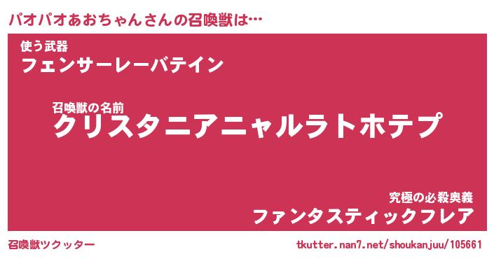 | ファンタジー風あだ名 | 『パオフェル』『ファントムパオス』 |