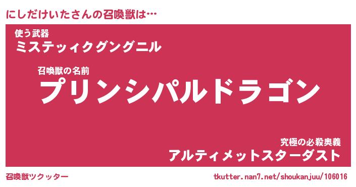 | ヒーロー風カッコイイあだ名 | 『スーパーニシダケイタ』『天弓騎士ニシ』 |