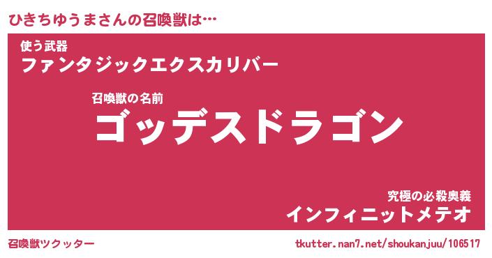 | ヒーロー風カッコイイあだ名 | 『スーパーヒキチユウマ』『暗黒騎士ヒキ』 |