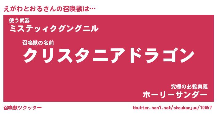 | 伝説のあだ名 | 『封印されし竜騎士えがわとおる』 |