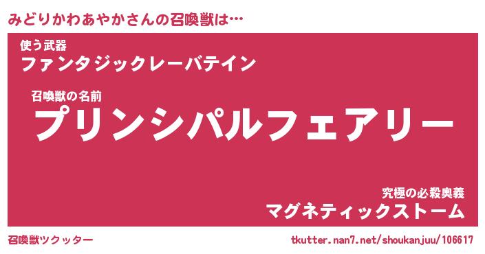 | 男性向けラノベタイトル風あだ名 | 『みどりかわあやかの憂鬱』 |