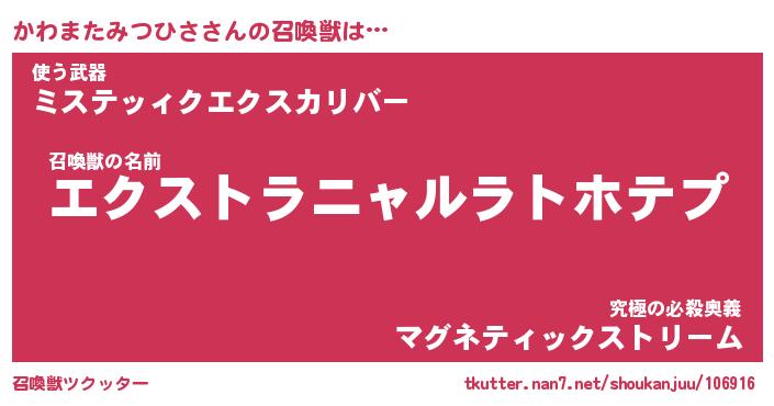 | ヒーロー風カッコイイあだ名 | 『スーパーカワマタミツヒサ』 |