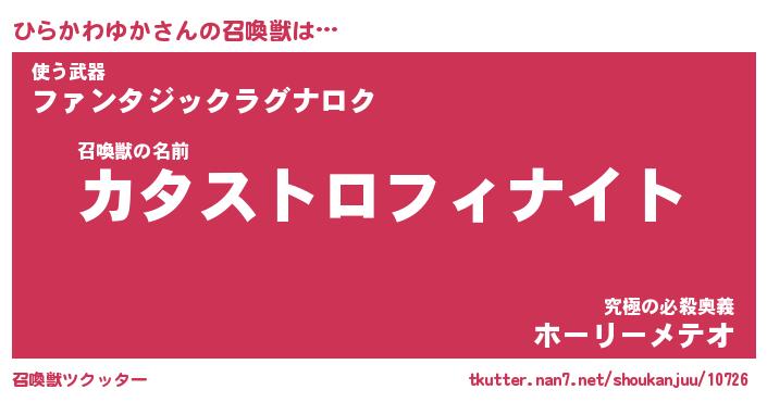 | 伝説のあだ名 | 『封印されし傭兵ひらかわゆか』 |