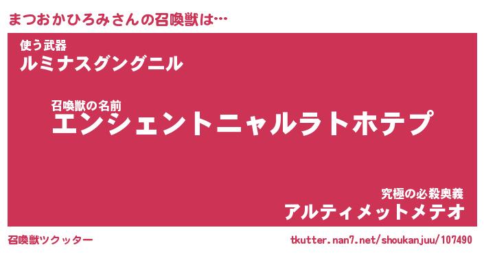 | 肩書あだ名 | 『まつおかひろみ御曹司』 |