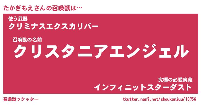 | ファンタジー風あだ名 | 『タカフェル』『エターナルタカギモエー』 |