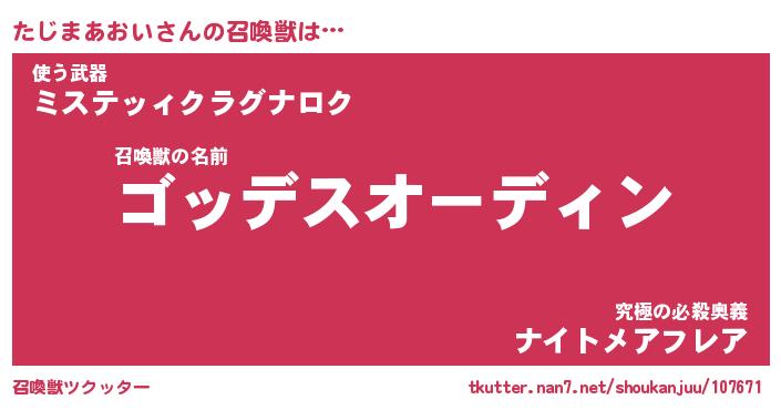 | 胡散臭い通販商品みたいなあだ名 | 『モテモテ間違いなし霊験あらたかなお札…その名も「たじまあおい」』 |