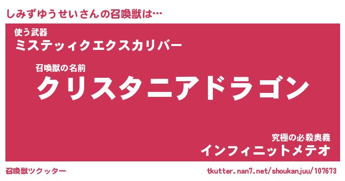 | 伝説のあだ名 | 『封印されし竜騎士しみずゆうせい』 |