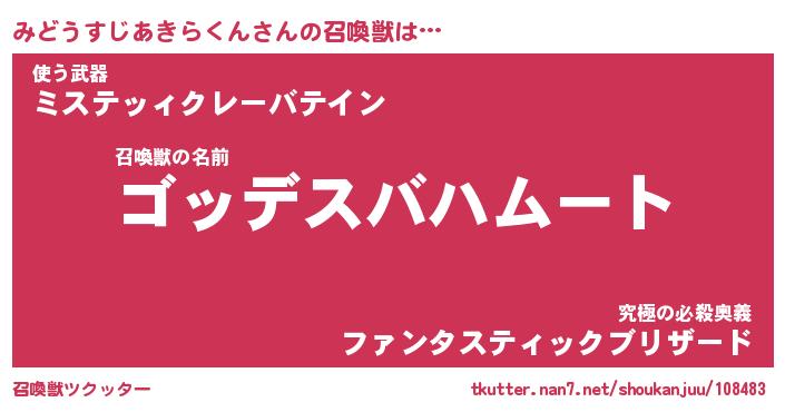 | ヒーロー風カッコイイあだ名 | 『スーパーミドウスジアキラクン』 |
