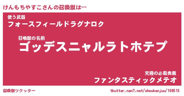 | 胡散臭い通販商品みたいなあだ名 | 『モテモテ間違いなし霊験あらたかなお札…その名も「けんもちやすこ」』 |