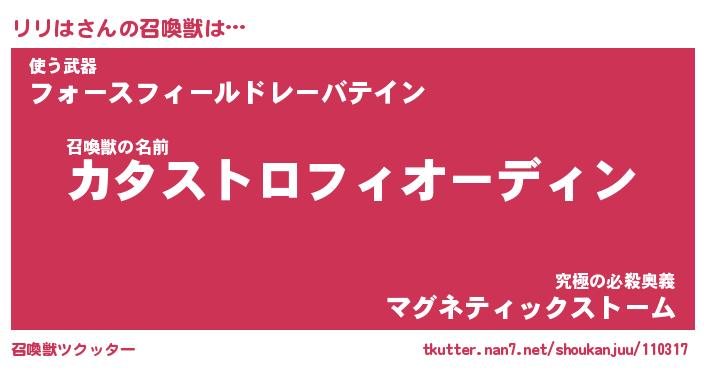 | 自動車の名前っぽいあだ名 | 『リリティマ』『リスラー』『リント』 |