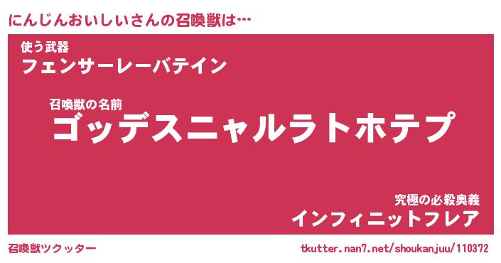 | 伝説のあだ名 | 『不死鳥のスナイパーにんじんおいしい』 |