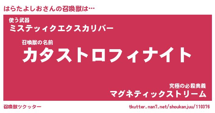 | ヒーロー風カッコイイあだ名 | 『スーパーハラタヨシオ』『天弓騎士ハラ』 |