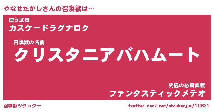 | ヒーロー風カッコイイあだ名 | 『スーパーヤナセタカシ』『天弓騎士ヤナ』 |
