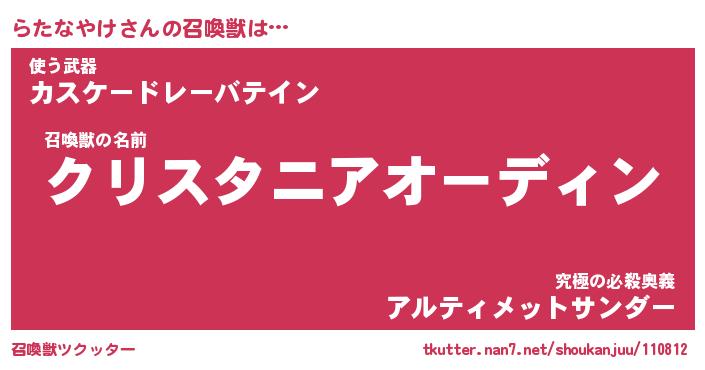 | 自動車の名前っぽいあだ名 | 『ラタティマ』『ラクア』『デミラ』 |