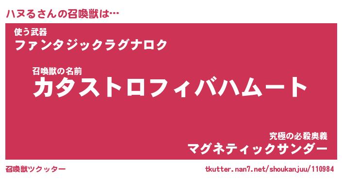 | ファンタジー風あだ名 | 『ハヌフェル』『エターナルハヌルー』 |