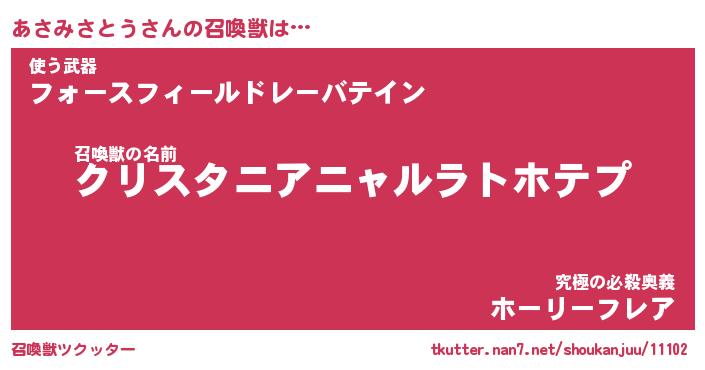 | ツイッター | あさみさとうさんのツイッターID『namakemono_nyan』 |