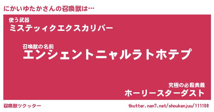 | ヒーロー風カッコイイあだ名 | 『スーパーニカイユタカ』『魔戒騎士ニカ』 |
