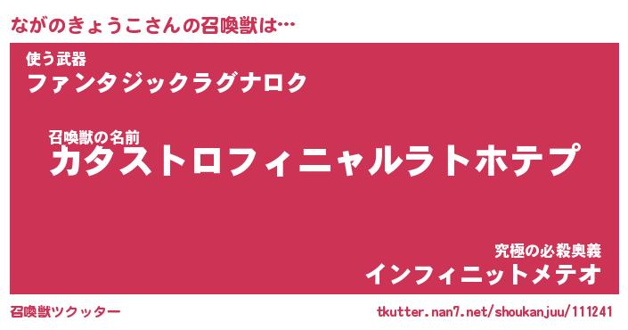 | 伝説のあだ名 | 『封印されしスナイパーながのきょうこ』 |