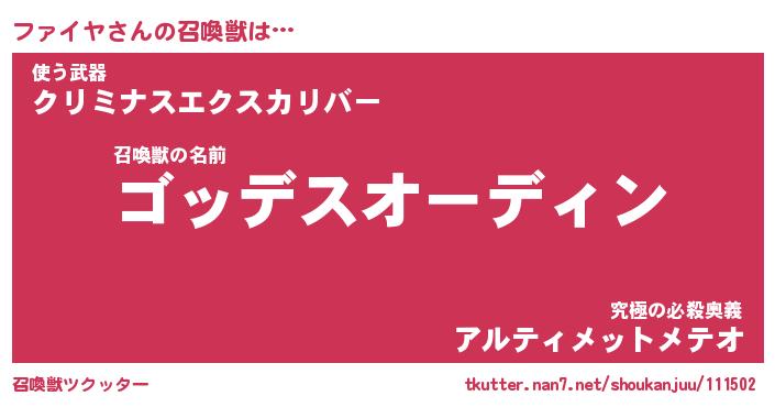 | 女子向けラノベタイトル風あだ名 | 『ファイヤ姫と円卓の騎士』 |