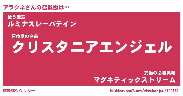 | 意味不明あだ名 | 『ペロリンアラクネ』『永久保存アラクネ』 |