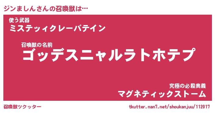 | ファンタジー風あだ名 | 『ジンフェル』『エターナルジンマシンー』 |