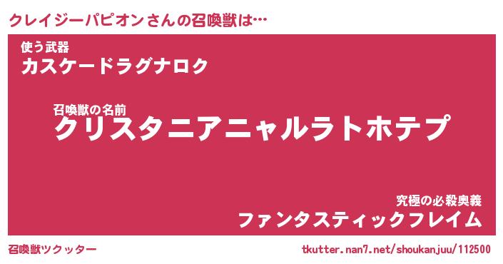 | ツイッター | クレイジーパピオンさんのツイッターID『dendenmushi_nyan』 |